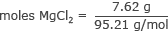 In this case, the solute is 7.62 grams of MgCl 2. The formula needs the number of moles.