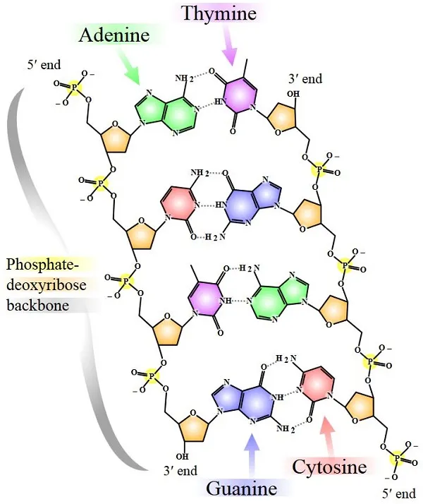 DNA polymerase is a crucial enzyme in the DNA repair process. It uses free-floating nucleotides to “rebuild” damaged DNA strands. After another enzyme, helicase, unwinds the DNA, DNA polymerase reads one strand and adds complementary nucleotides to form a new, paired strand. The base pairing in DNA is highly specific: guanine (G) pairs with cytosine (C), and thymine (T) pairs with adenine (A). However, errors in this process can lead to incorrect base pairing, resulting in mutations. Other enzymes are designed to “proofread” the DNA and correct these mistakes, but if a mutation is not caught, it can be passed on when the cell divides.