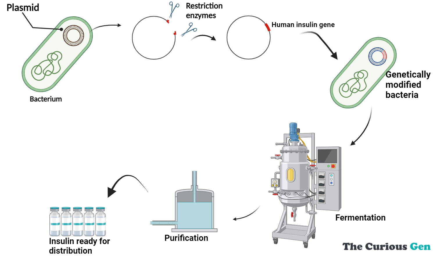 Genetic engineering generally refers to recombinant DNA technology, which originated from basic research in microbial genetics. The techniques developed have led to the production of medically important products, including human insulin, human growth hormone, and the hepatitis B vaccine, as well as the development of genetically modified organisms (GMOs), such as disease-resistant plants.